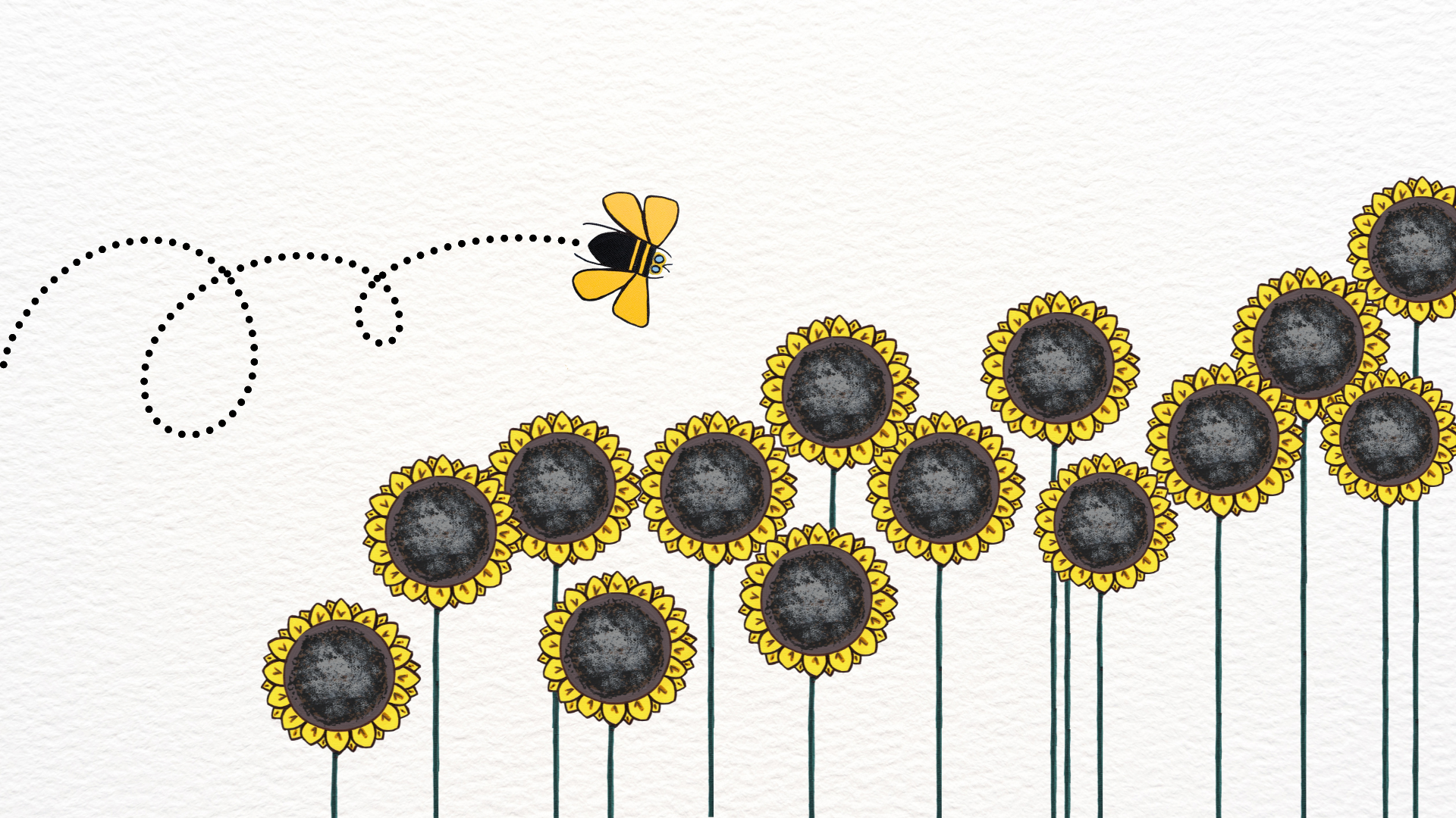 Set of 10 "Grateful..." Sunflower Beeline Flat Blue Note Card W/Kraft Envelope