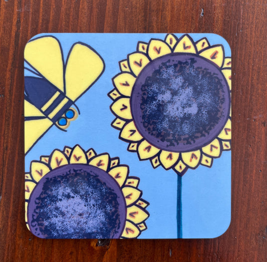 Coasters- Set of 5 Cork Backed Sunflowers & Bee Coasters